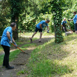 Posledný tím, ktorý riadne prepotil tričká, pracoval na úprave a spevnení okružného chodníka v okolí dolných jazierok a prírodnej mokrade s apidomčekom. S výdatnou pomocou kvestora Univerzity P. J. Šafárika Michala Tkáča, riaditeľa Botanickej záhrady Pavla Martónfiho a jeho kolegov pracoval Kosmas Bekiaris, Peter Chytil aj Judita Andaházyová s kamarátkou. Spoločne nerovnosti na ceste zaviezli kamenivom, vyrovnali a zavalcovali do podoby bezpečného a upraveného lesného chodníka. Viacerí sa zhodli, že dobrovoľná práca v prírodnom prostredí je zároveň aj účinná psychohygiena, preto nevadí ani pár mozoľov naviac.