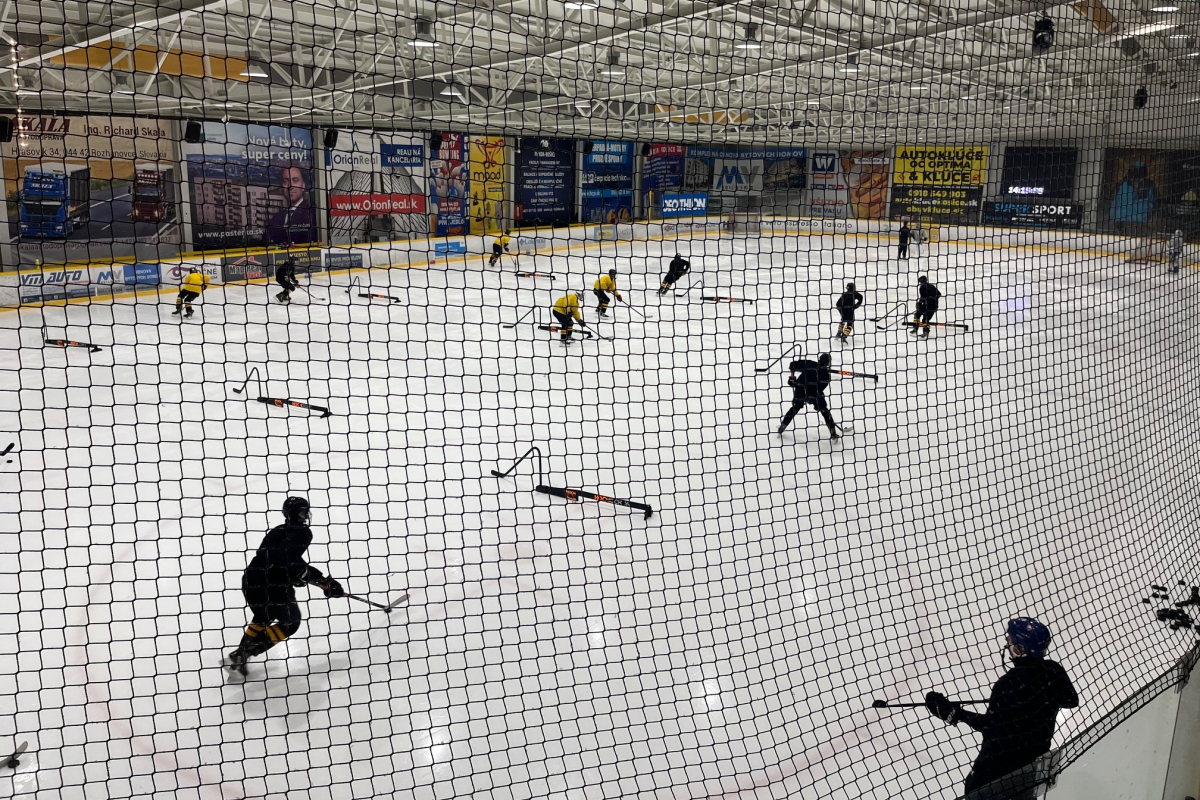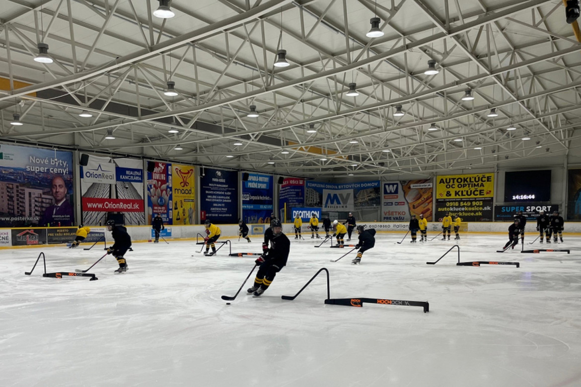Tréning hokejistov nie je len o tvrdej fyzickej príprave a úsilí o čo najlepšiu kondíciu, ale aj o správnej technike, vďaka ktorej môže hráč získať výhodu. Špeciálnou časťou tréningov je takzvaný stickhandling, teda zaobchádzanie s hokejkou (z angl. stick - hokejka a handling - zaobchádzanie). Obstaranie praktických tréningových pomôcok na takýto tréning bolo súčasťou projektu. O ich výhodách hovorí Marek Mergleský z HK Sršne Košice (na fotografii druhý zľava):