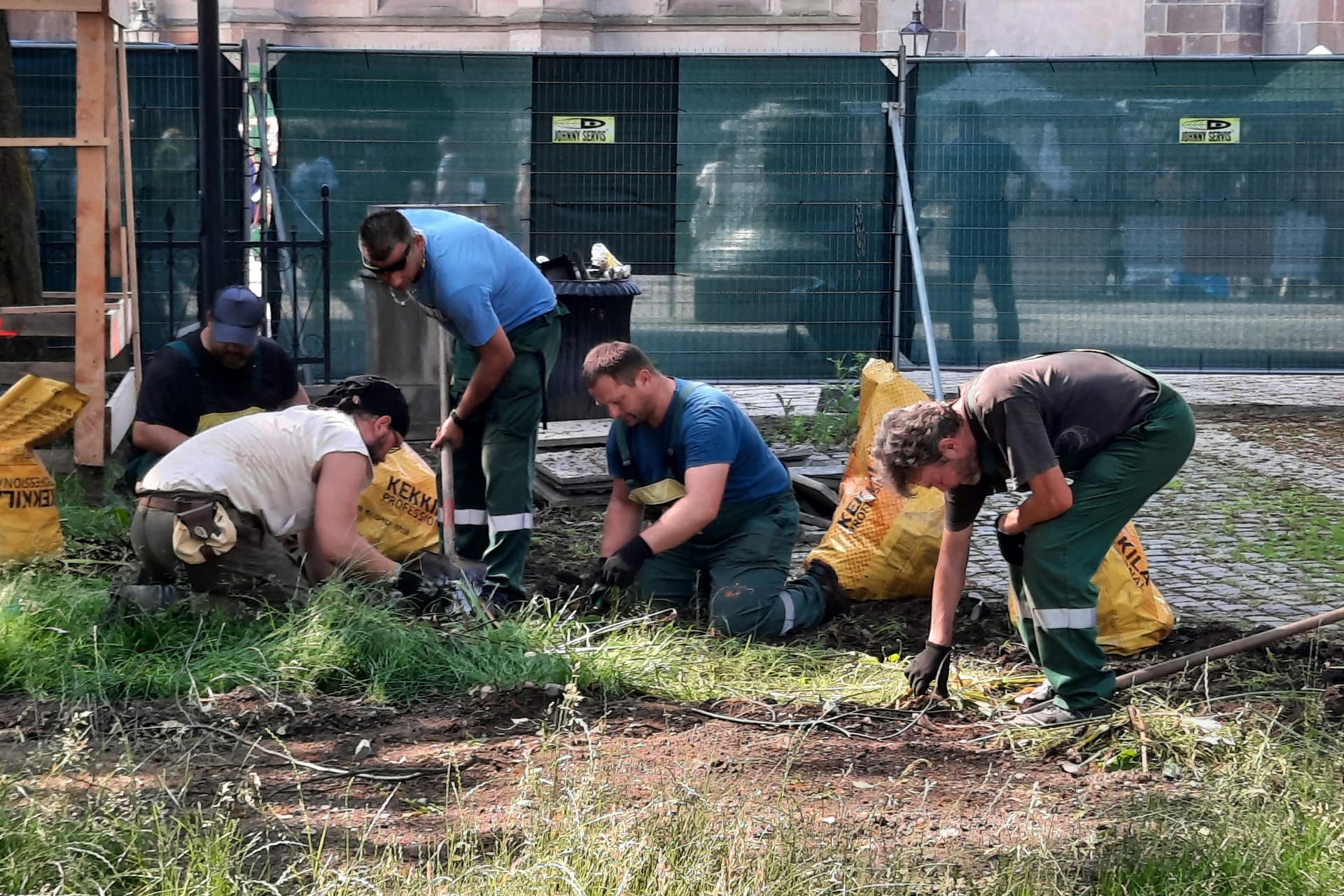 Pracovníci Správy mestskej zelene inštalujú v parku moderné zavlažovanie, ktoré nahradí doterajšie polievanie zelene cisternami.