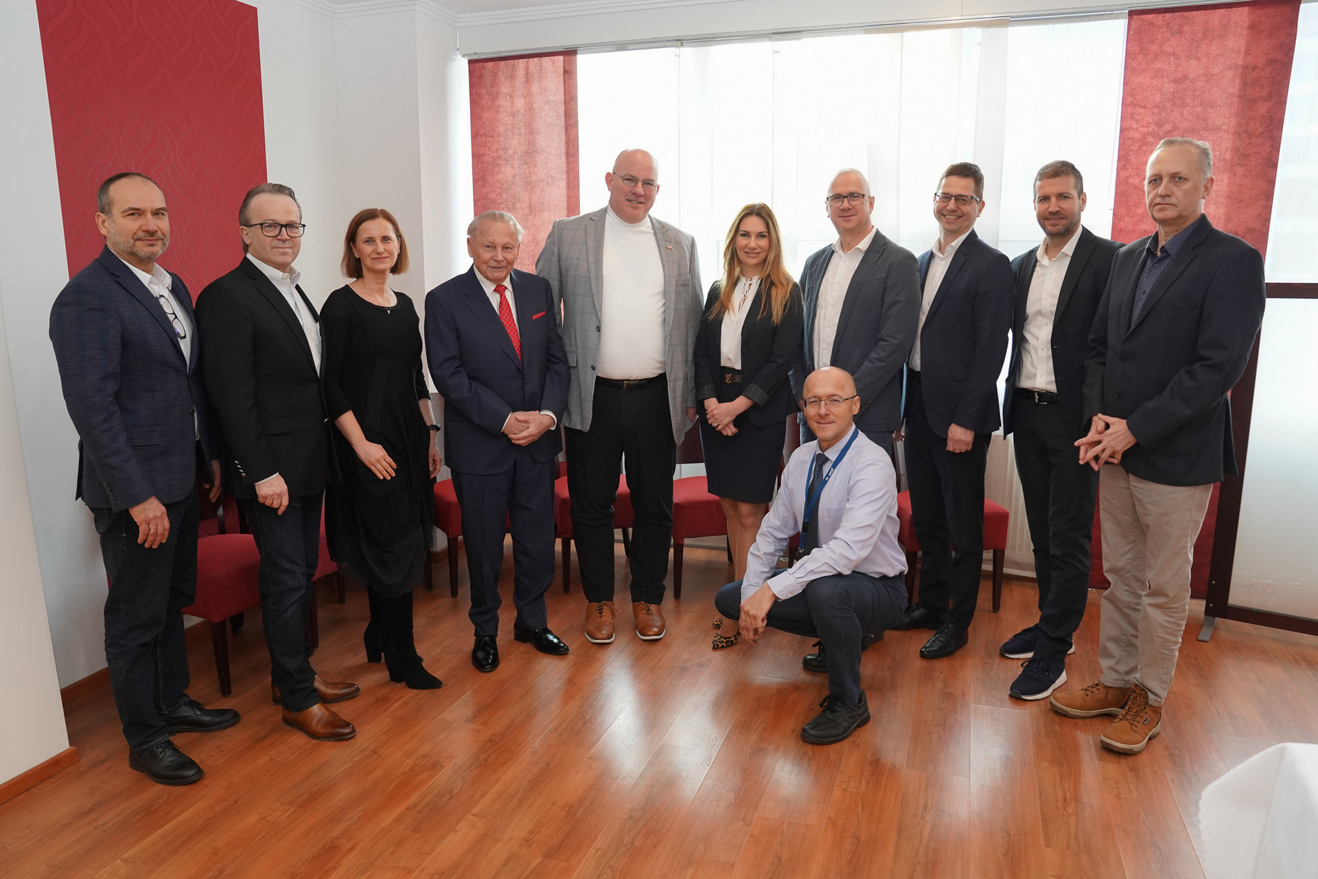 Dnes k nám zavítal veľmi vzácny hosť – bývalý prezident Slovenskej republiky Rudolf Schuster. Na spoločné stretnutie a raňajky s manažérmi pozvali Rudolfa Schustera prezident Jim Bruno a viceprezident Miroslav Kiraľvarga.