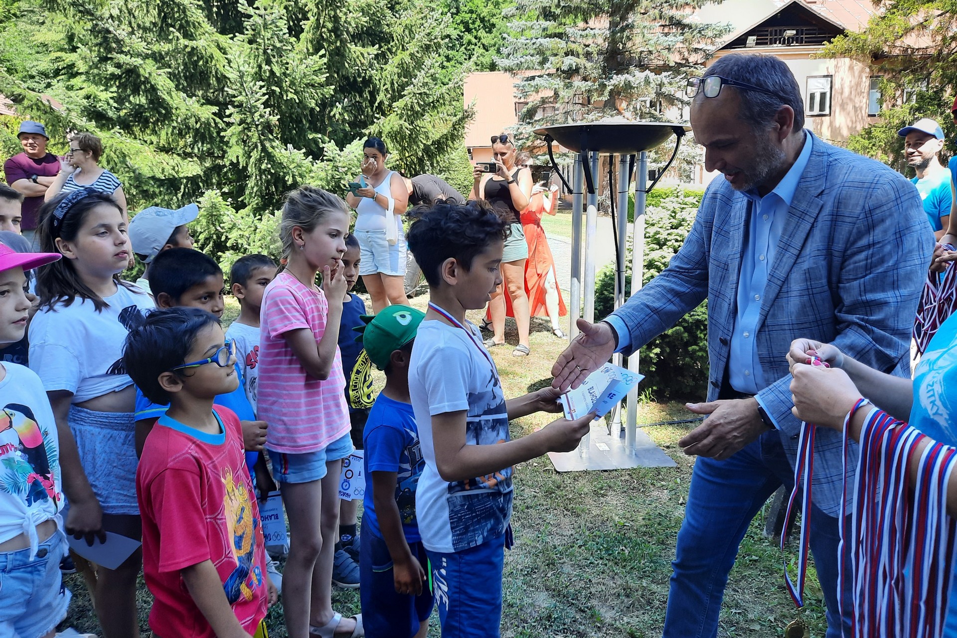 Poobede si prevzali za svoje športové výkony medaily, ktoré deťom rozdal riaditeľ pre Vonkajšie vzťahy Ján Bača. A tesne pred odchodom dostalo každé dieťa aj darček – hrnček s vlastným menom.