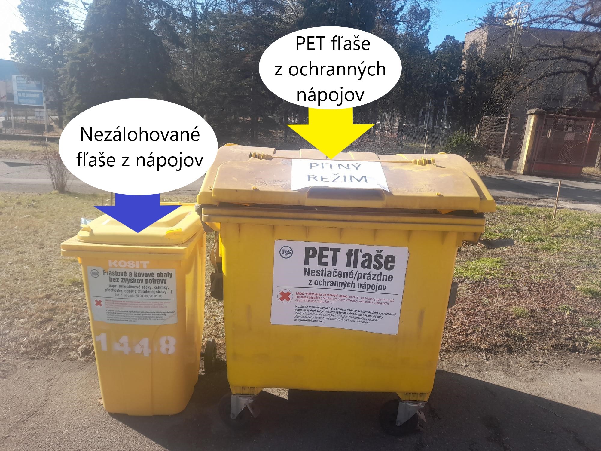→ nestlačený obal s vrchnákom a nepoškodeným kódom vhodím v areáli USSK do špeciálnych žltých nádob s označením PITNÝ REŽIM, resp. PET fľaše nestlačené/prázdne z ochranných nápojov. Keďže zálohu za nápoje zaplatil zamestnávateľ, ten si ju pri vrátení fliaš uplatní.