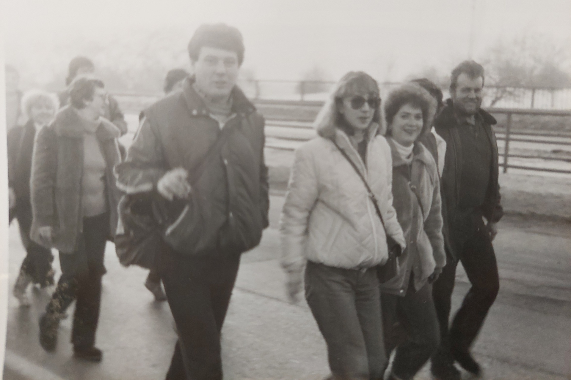 Spartakiáda v roku 1984. Zamestnanci VSŽ chodili nacvičovať na spartakiádu. Na fotke kolegyne vtedy z odboru MZO Erika Patakyová, Vlasta Ondovčíková a Elena Bohunická.