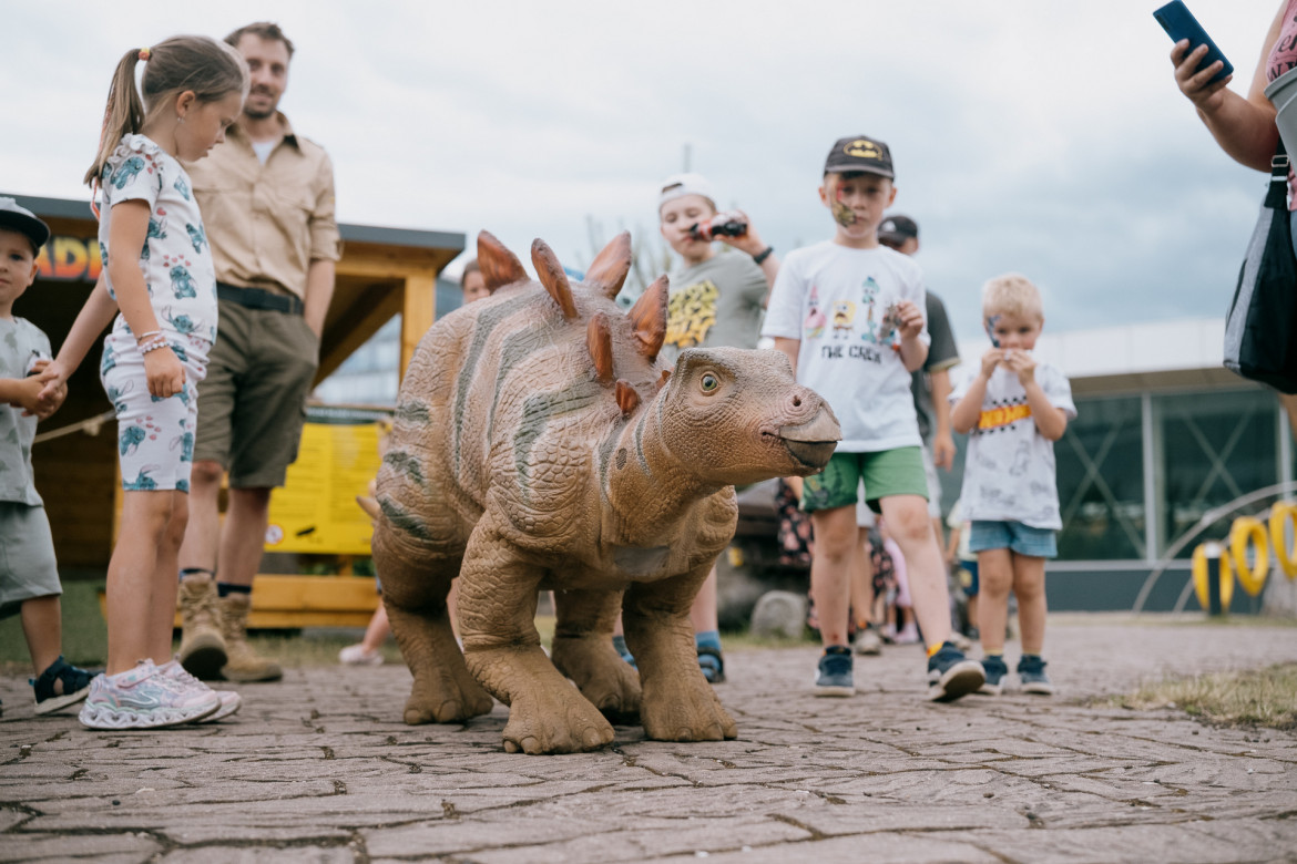 Od včera sa areálom DinoParku, ktorý je súčasťou ZOO, prechádza chodiaci, robotický dinosaurus. Vďaka spojeniu špičkovej technológie a sveta druhohôr tak prináša návštevníkom úplne nový zážitok, aký na Slovensku nemá obdobu. Je to verná, robotická replika mláďaťa Stegosaura, ktorý meria 1,8 metra a váži 25 kg. Má pohyblivú hlavu a chvost, vydáva zvuky a pohybovať sa môže rýchlosťou až 12 km/h.