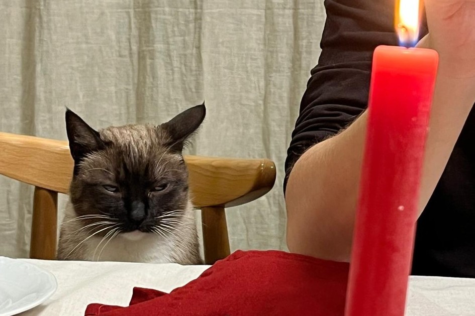 Posledných pár rokov chodíme na Vianoce za vnúčatami do Poľska. Je nás pri stole veľa, takmer tucet. Rozprávame sa po slovensky, poľsky, rusky aj anglicky, A všetci naraz a hlasno. Dcérin kocúr, plným menom Fedor Michajlovich Dostojevskij, v skratke Fedia, sa tiež snaží rozprávať, pardon mňaukať , ale v tom hluku ho vôbec nepočuť. Čiže sa nás snaží zaujať inými schopnosťami, napríklad zhodiť stromček, odniesť škatuľu s darčekmi k sebe do domčeka, alebo skvalitniť vianočný zemiakový šalát .