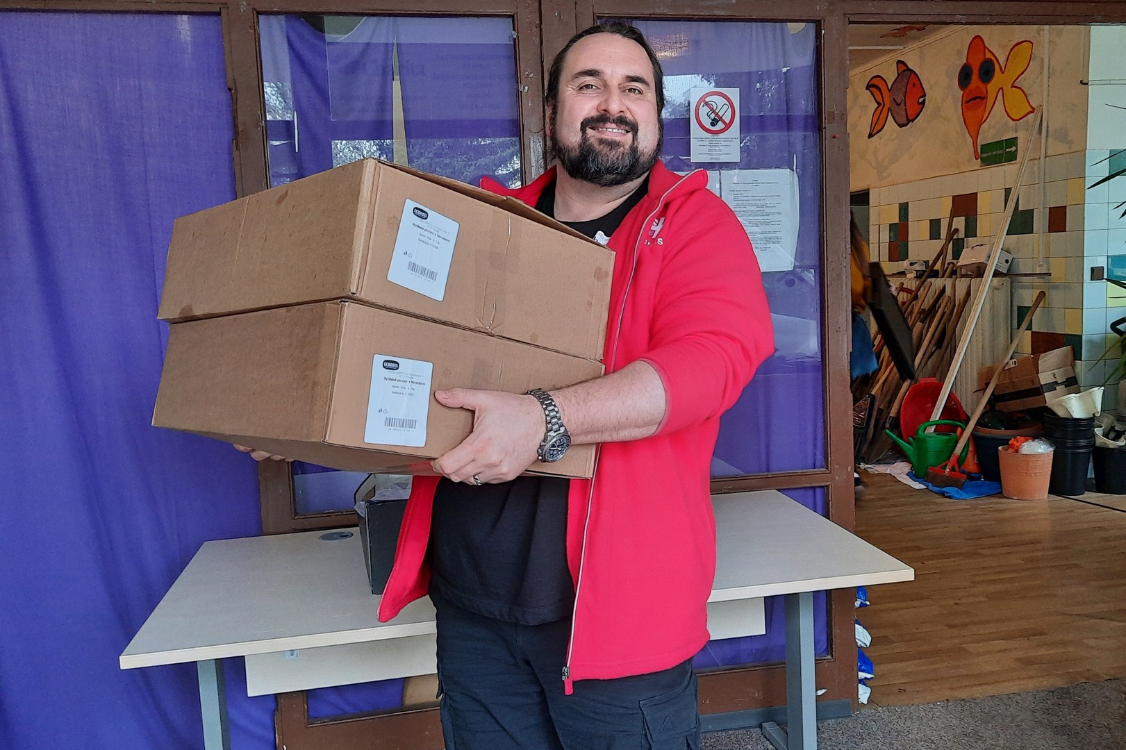 Prvou zastávkou bola Košická Nová Ves, kde nás už čakal Miroslav Firda spolu s pracovníkmi zariadenia, ktorí pomohli s vykladaním obedov.