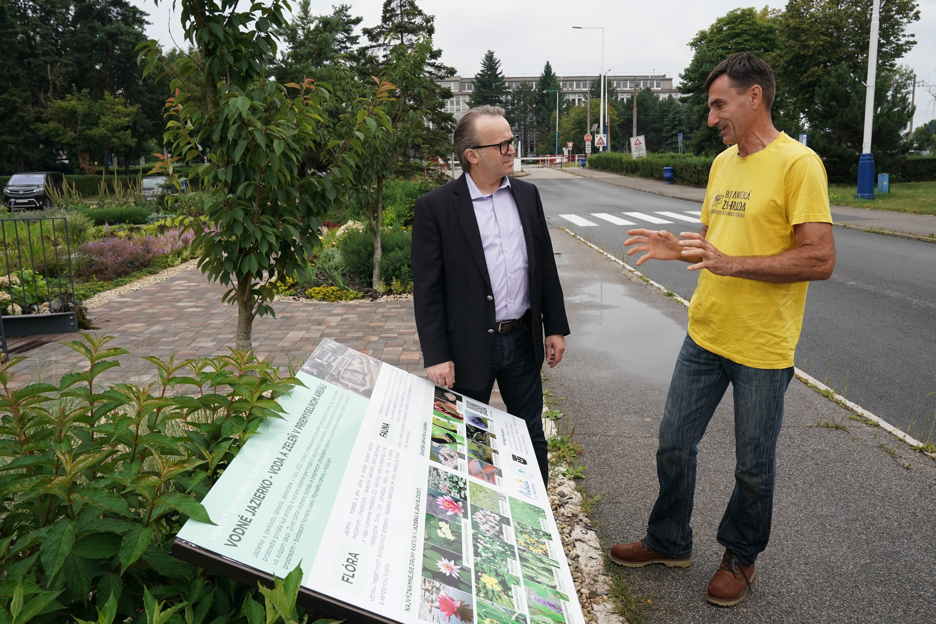 Pri jazierku vo vstupnom areáli pribudla nová informačná tabuľa. O jej obsah a osadenie sa postarali pracovníci Botanickej záhrady UPJŠ Košice. Oficiálne ju dnes odhalili Miroslav Kiraľvarga, viceprezident pre vonkajšie vzťahy, riadenie a rozvoj podnikania a Robert Gregorek, zástupca riaditeľa pre prevádzku Botanickej záhrady UPJŠ.