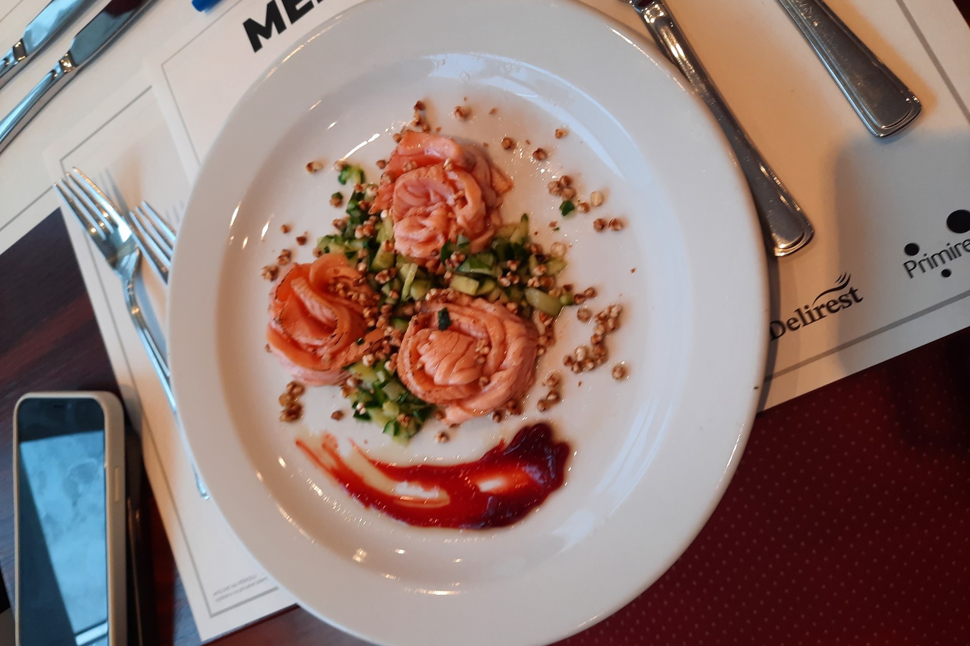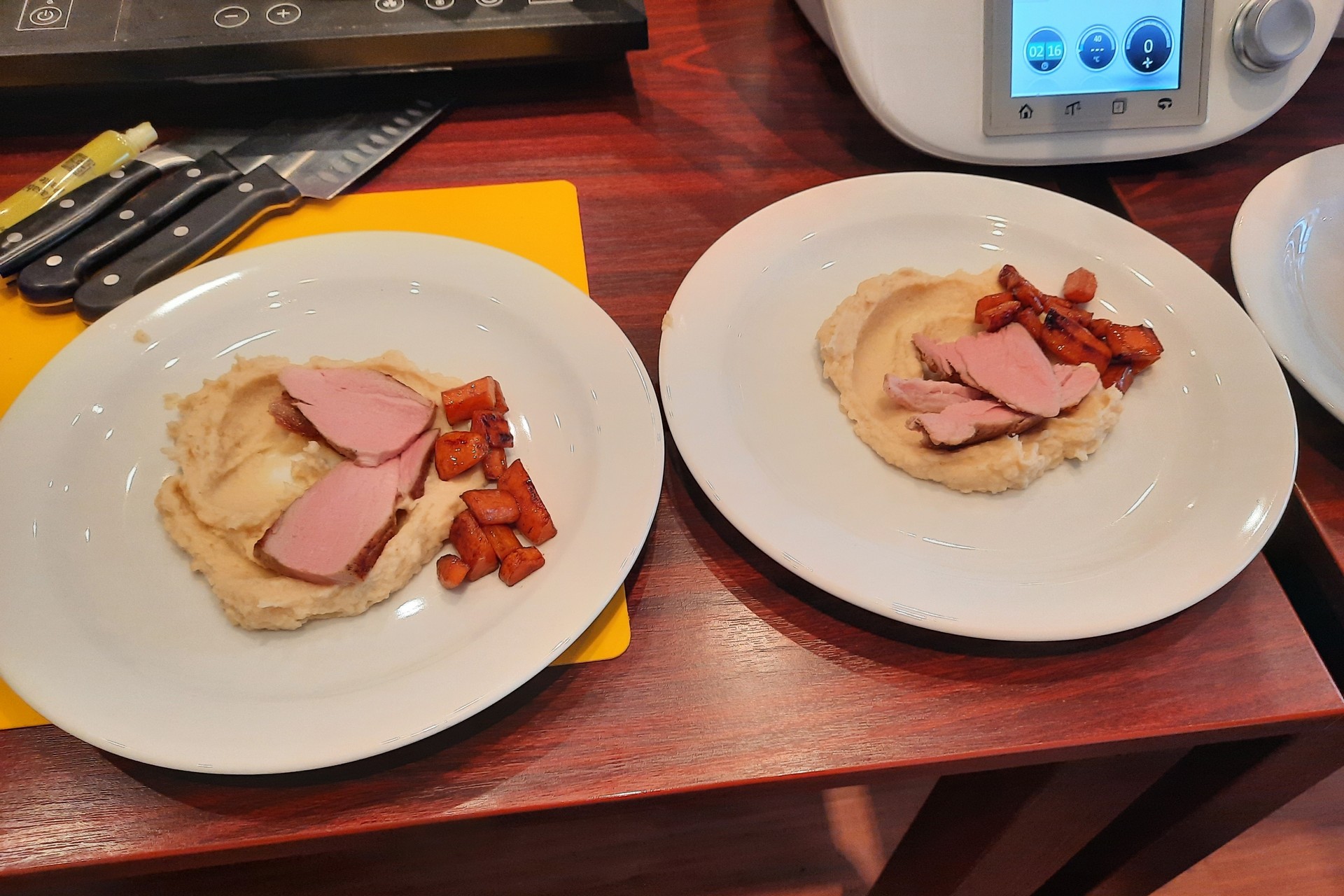 „Ako chutne si navaríte, tak chutne sa najete. Veľa vecí som vám pripravil vopred, aby ste sa nezdržiavali napríklad čistením cibule. Predjedlom bude Spálený losos, marinovaná uhorka, pohánkové pukance a cviklový gél. Ako hlavné jedlo si pripravíme Bravčovú panenku s wasabi petržlenom a glazovanou mrkvou. Všetko to bude bez laktózy, bude to teda zdravšia verzia jedál, ktoré poznáte,“ takto predstavil šéfkuchár slávnostné menu.