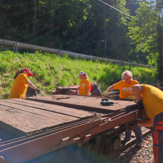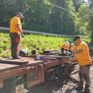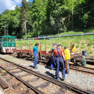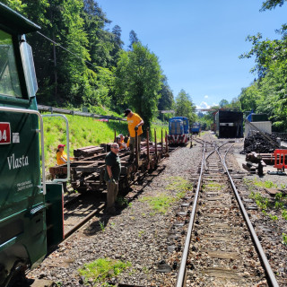 Tento rok sa ale niesol aj v inom duchu. Okrem skrášľovania staničiek železničky sme tentoraz odstraňovali i následky mimoriadnej dažďovej a veternej smršte, ktorá 9. júna udrela v Čermeľskom údolí. Chlapi sa pustili do čistenia trate, jej okolia a železničných mostíkov, na dámy čakalo čistenie okolo nového drezinového oválu na Alpinke a maľovanie plošinového vozňa.