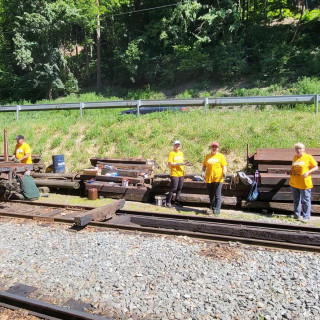 Na stanici v Čermeli zostali pod vedením Petra Košička a Igora Holéczyho z Detskej železnice dobrovoľníci Miroslav Feťko, ktorého čakala práca v depe, Michal Tančák, Štefan Vojtko, Roman Fedák a ženská zostava v zložení Zita Hromotová a Monika Moravanská s dcérou, ktorí sa pustili do údržby plošinového vozňa. Mužské osadenstvo renovovalo a vymieňalo kovové a drevené častí, ktoré potom dámy natierali, aby vozeň vyzeral ako nový.