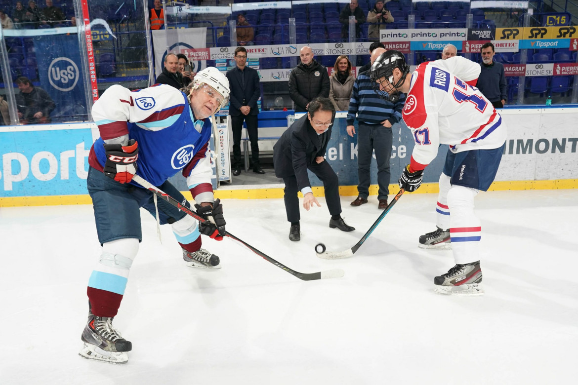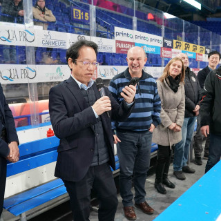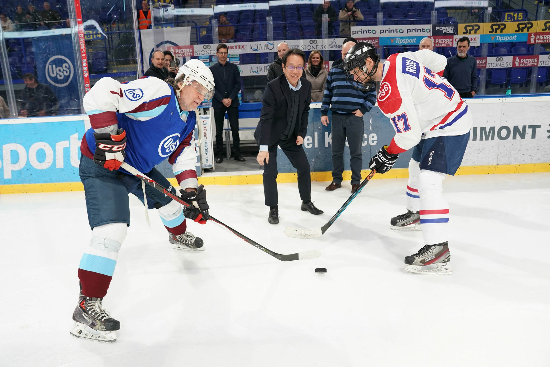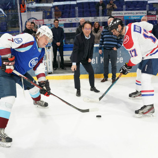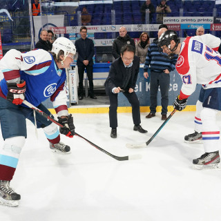 Včera sa odohrali prvé zápasy hokejového turnaja o Pohár prezidenta U. S. Steel Košice na ľade Steel arény. Slávnostné buly zápasu Finishing : Vedenie + IT vhodil Toshiaki Takamatsu, generálny manažér pre strategické plánovanie technológií.