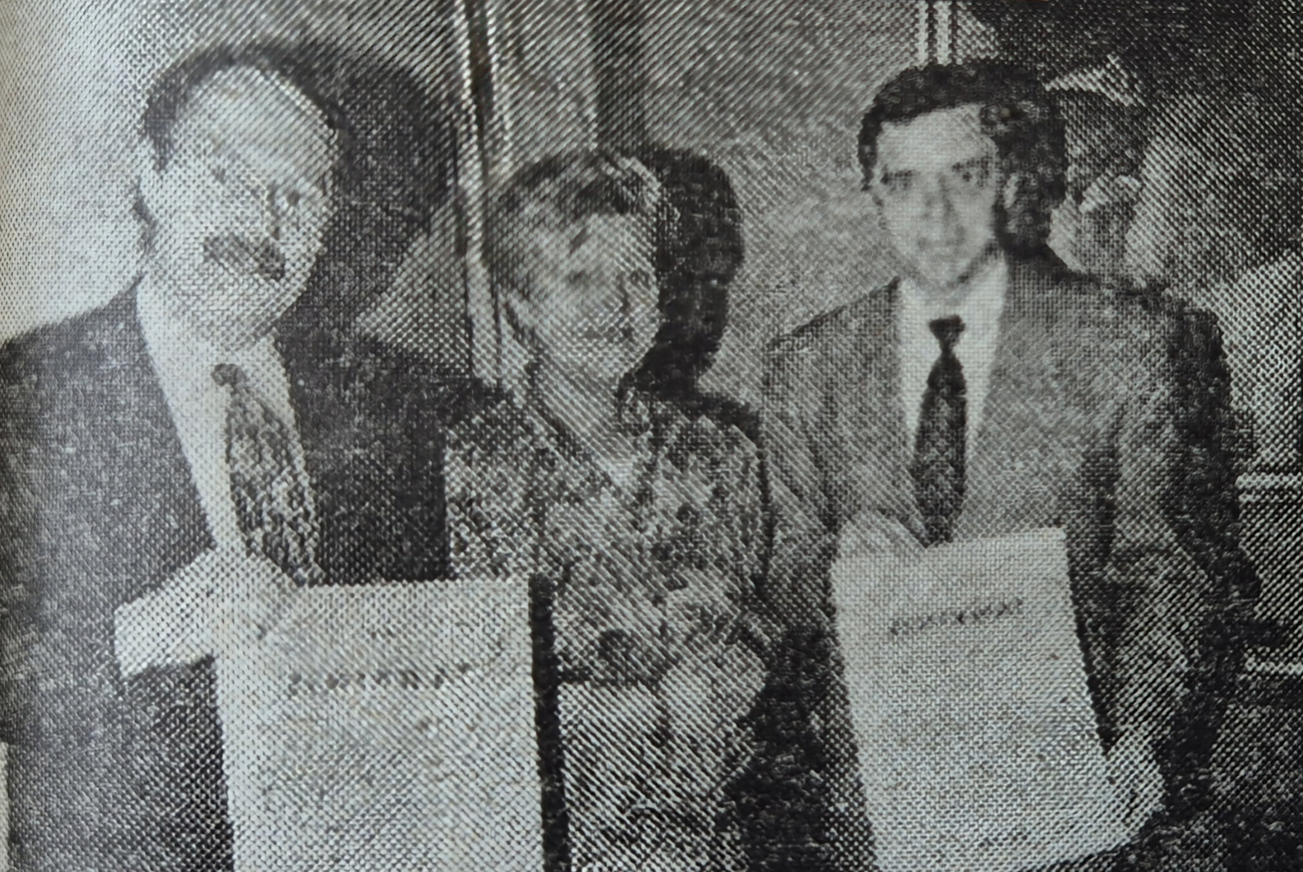 iaditeľ divízneho závodu Oceliareň František Uličný (vľavo) a výrobný námestník riaditeľa studenej valcovne Peter Molnár pri prevzatí certifikátov systému riadenia akosti. Uprostred riaditeľka kancelárie RW TŰV v Prahe Marie Krause.