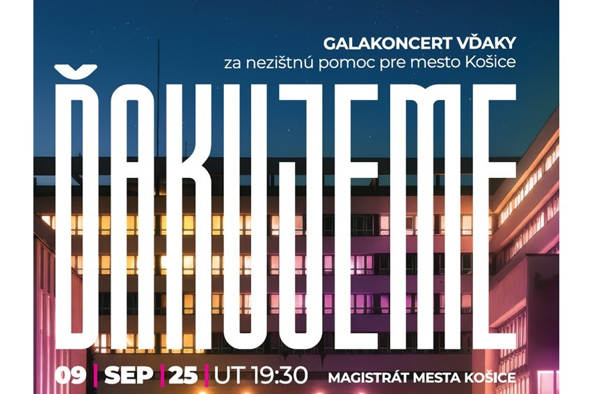 Už zajtra, v utorok 9. septembra sa o 19.30 začne galakoncert mesta Košice nazvaný Ďakujeme. Uskutoční sa na veľkom schodisku Magistrátu mesta Košice na Triede SNP 48.