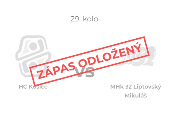 Dávame do pozornosti, že zápas proti HK 32 Liptovský Mikuláš, ktorý sa mal hrať zajtra, v piatok 20. decembra o 17:30 v Steel aréne, je odložený. Konať sa nebude.