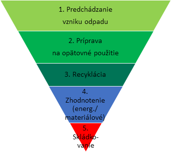 Pri nakladaní s odpadom je dôležité sa zamyslieť nad tým, prečo odpad vzniká a ako tomu môžeme predísť. Najlepším odpadom je odpad, ktorý nevznikne, a teda žiaden odpad. Preto je potrebné zvážiť každý váš krok a vaše správanie, a to pri každej činnosti v práci alebo doma. Preferujme svoje činnosti tak, aby odpad vznikol v minimálnom množstve a ak už odpad vznikol, snažme sa ho využiť, resp. spracovať do nového výrobku (sklenené fľaše od kávy použiť na uskladnenie potravín, neodhadzovať nenositeľné oblečenie a vytvoriť z neho užitočný doplnok a pod.).