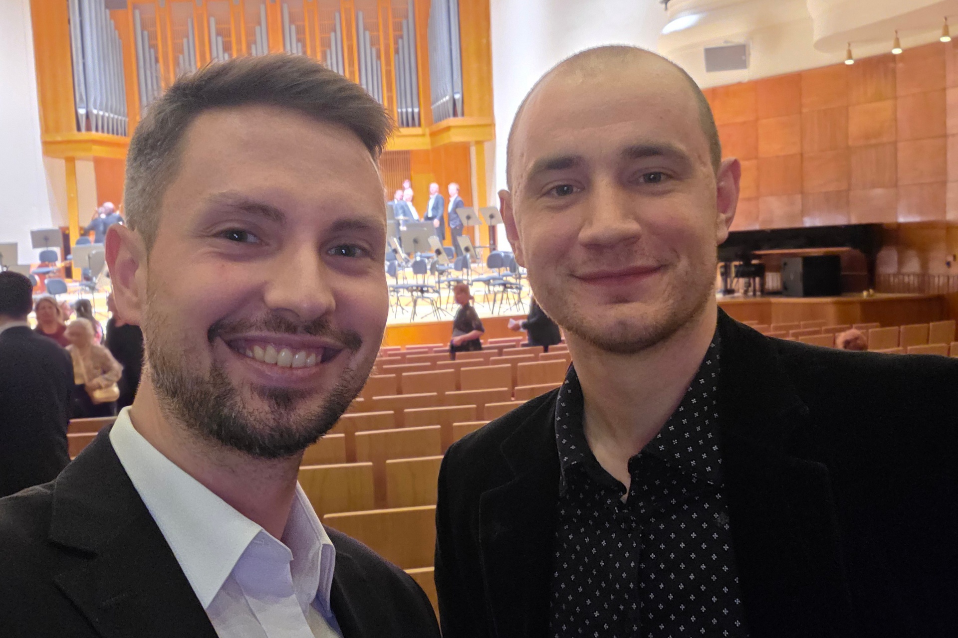 Obe časti koncertu boli zážitok a s kolegom Peťom Protivňákom sme vďační, že sme sa ho mohli zúčastniť. Pri prvej časti Beethovena som mal celý čas v hlave jeho obraz, ktorý si pamätám z detstva zo ZUŠ Bernolákova. Visel v triede na poschodí za koncertnou sálou. Obdivoval som jeho hrivu a pri veľkom šťastí si raz takú tiež vypestujem. Klavirista mi ho trochu pripomínal, lebo jeho majstrovstvo upevňoval aj jeho umelecký vzhľad a gestá. Pri druhej časti som sa celý čas pozeral na dirigenta. Zohnutím prsta na ľavej ruke dokázal usmerniť celú sekciu.