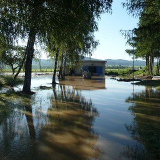 Vo fotogalérii nižšie zaplavená budova čerpacej stanice pitnej vody a priľahlých území v roku 2010.